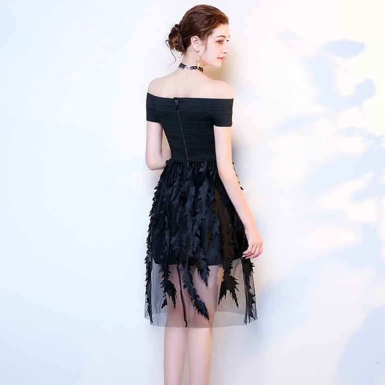 Hombros al descubierto y capa de tul en la falda con decoración original.