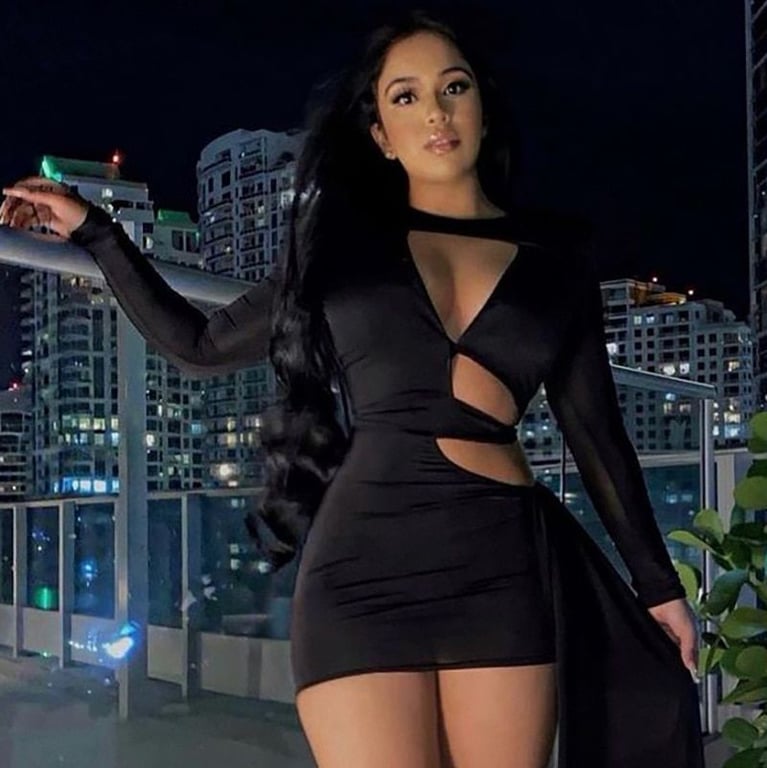 Un vestido audaz que resalta perfectamente el escote y las caderas.