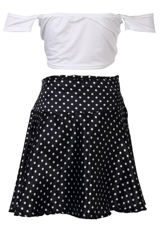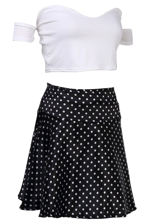 Bonito vestido de dos piezas - falda corta con cintura alta + top con mangas caídas.