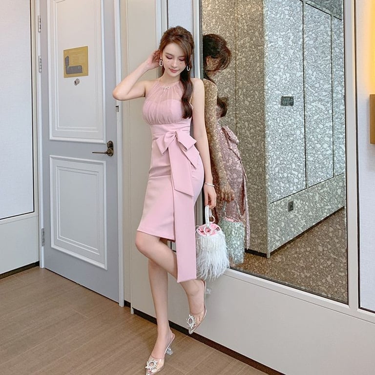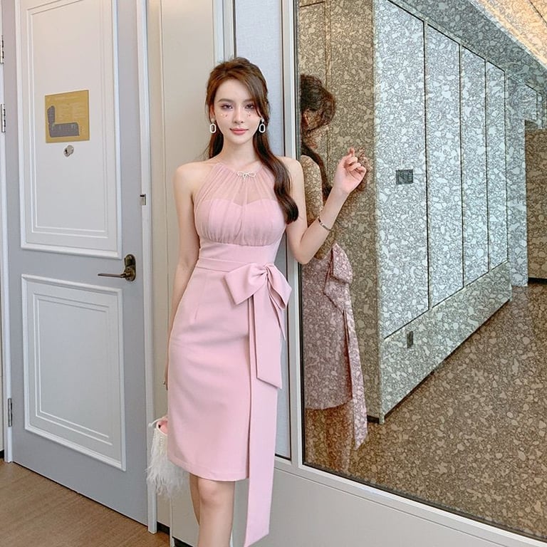 Hermoso vestido adornado con un lazo, de muy alta calidad.