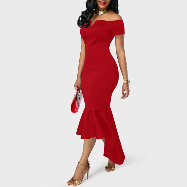 Vestido elegante con falda asimétrica y escote sexy. Ideal para eventos sociales.