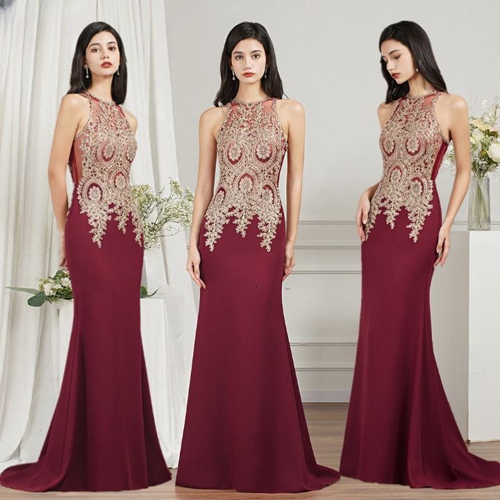 Vestido de gala de lujo para mujer con bordado dorado Annachiara