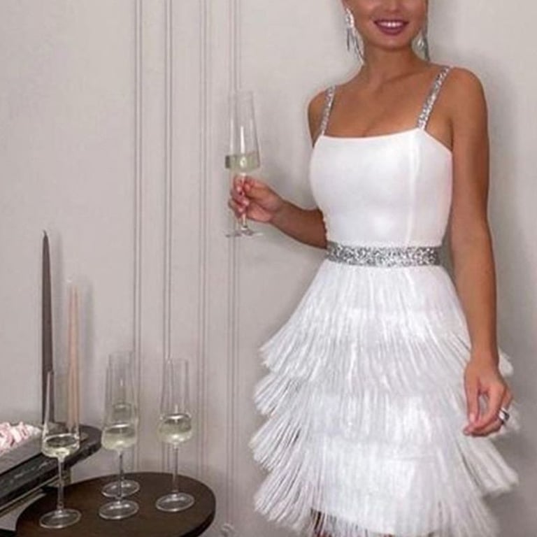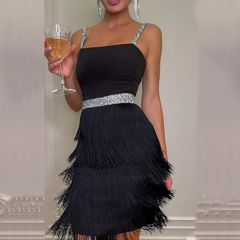 Vestido de gala moderno para mujer con flecos Avis
