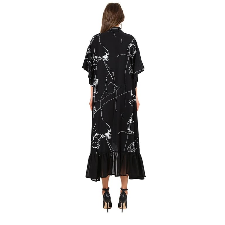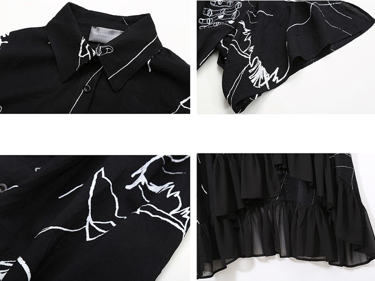 Corte holgado, material agradable. Dobladillo inferior con volante.