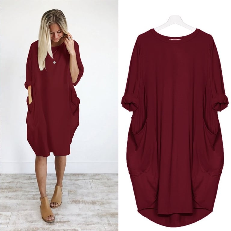 Vestido de mujer con bolsillos en un solo color