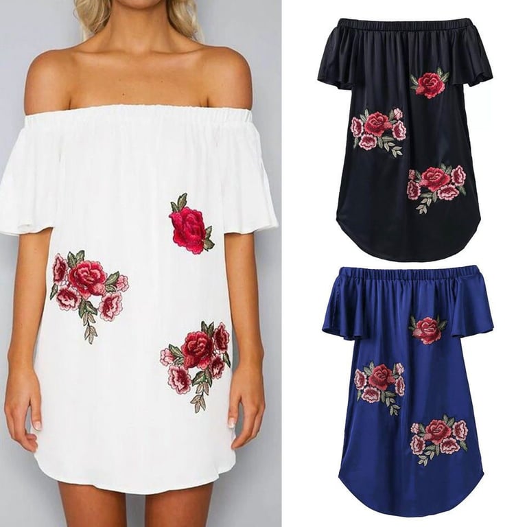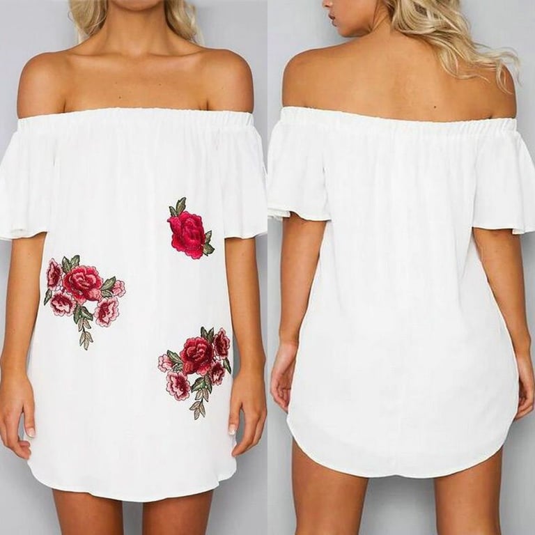 Vestido de mujer con hombros caídos Roses. Vestido de mujer con hombros caídos Roses