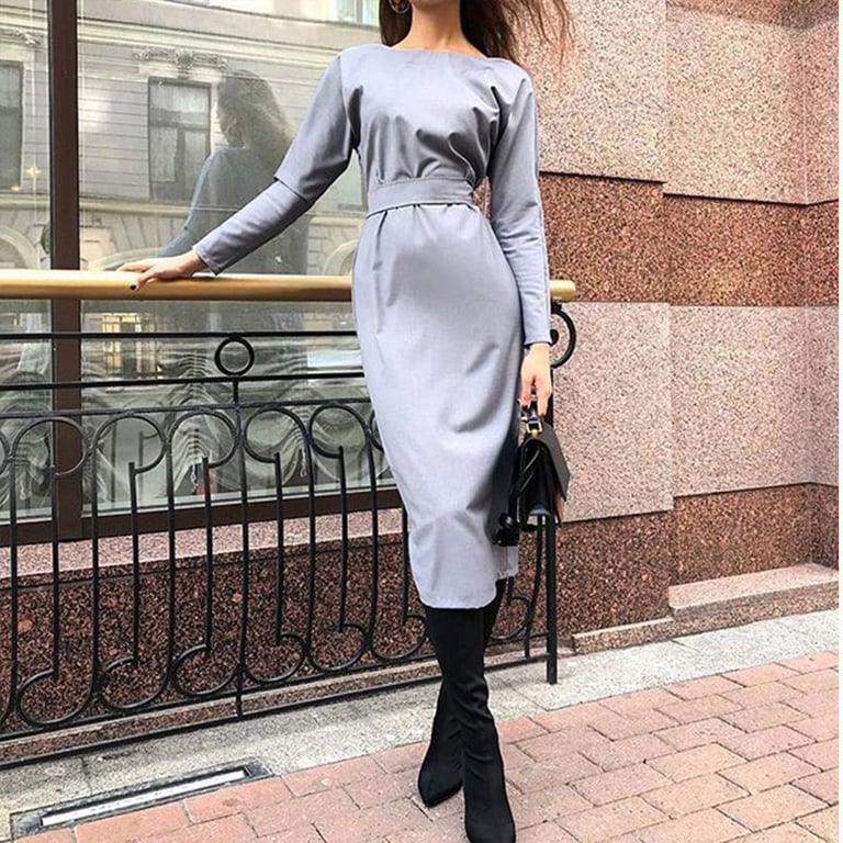 Vestido de mujer de manga larga Trojana - gris