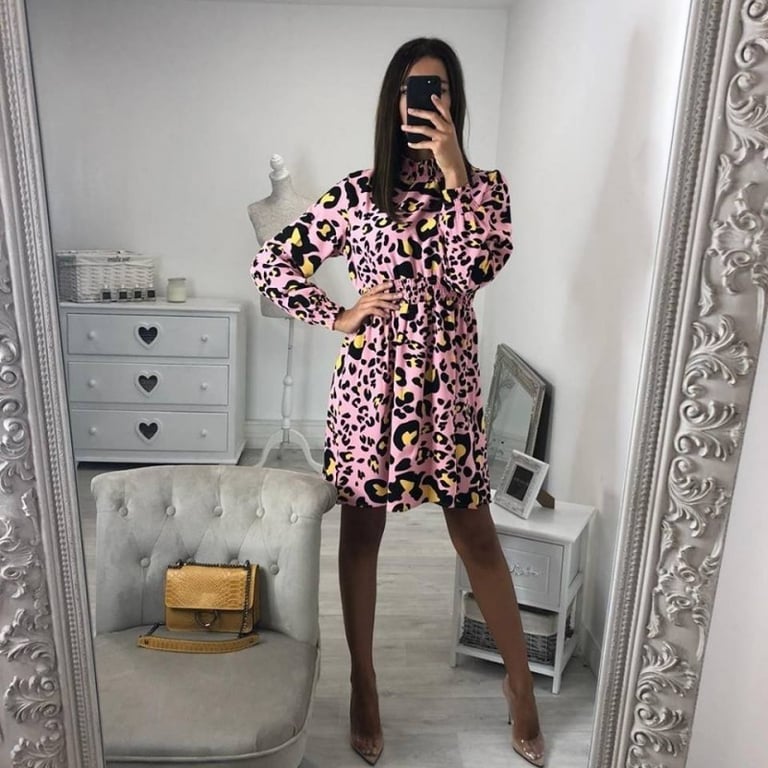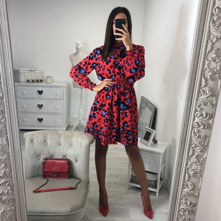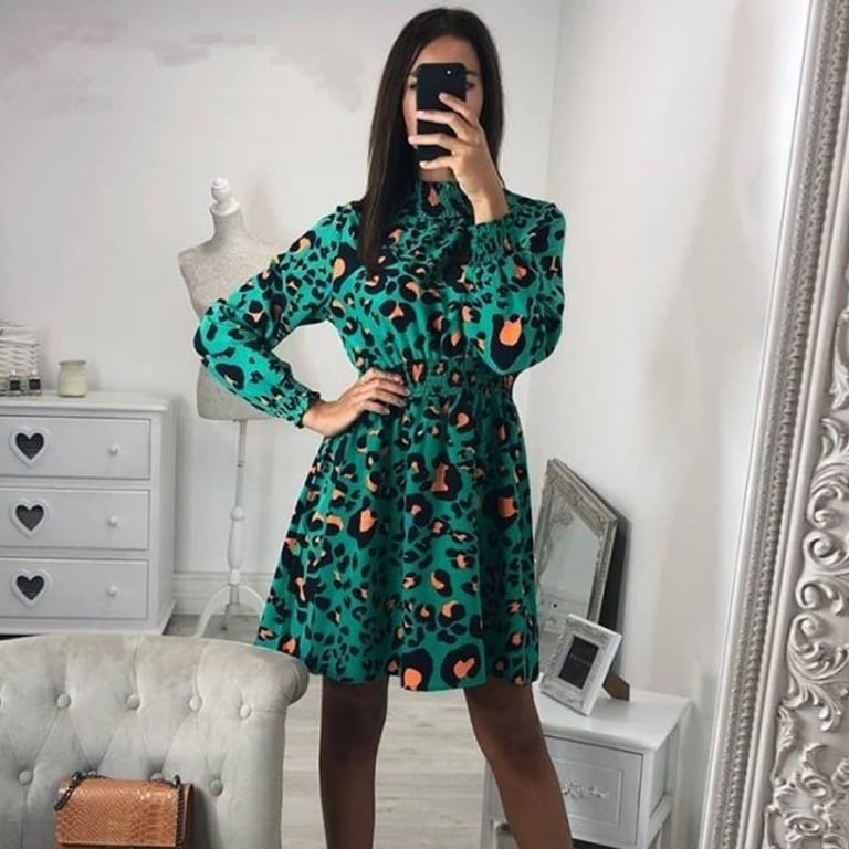 Vestido de mujer con mangas largas y un estampado llamativo.