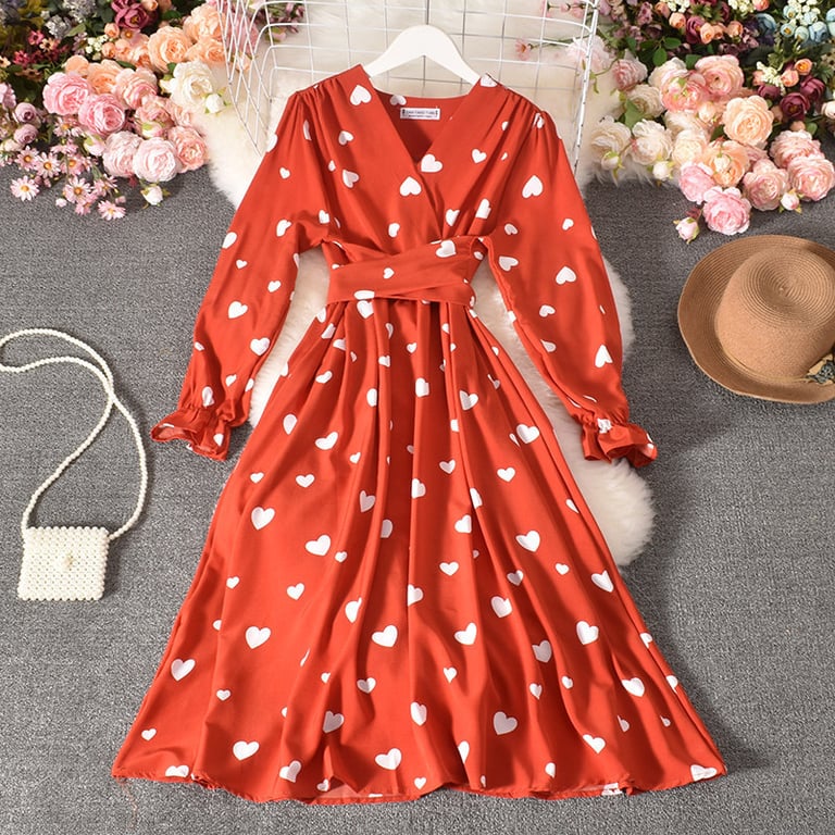 Elegantes vestidos de mujer en forma de A con mangas largas y motivo de San Valentín