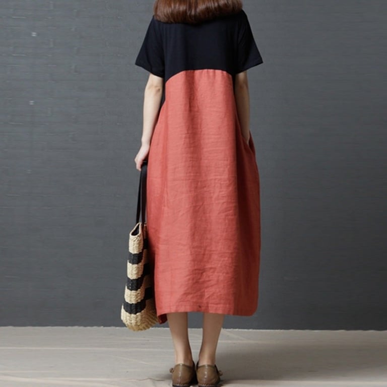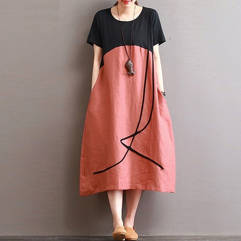 Vestido de mujer cómodo. Corte tipo túnica con mangas cortas en longitud midi.