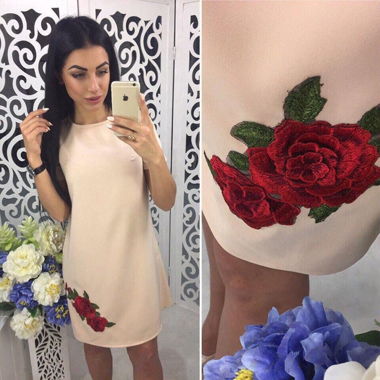 Vestido mini para mujer con un parche de moda de rosa.