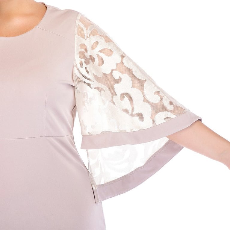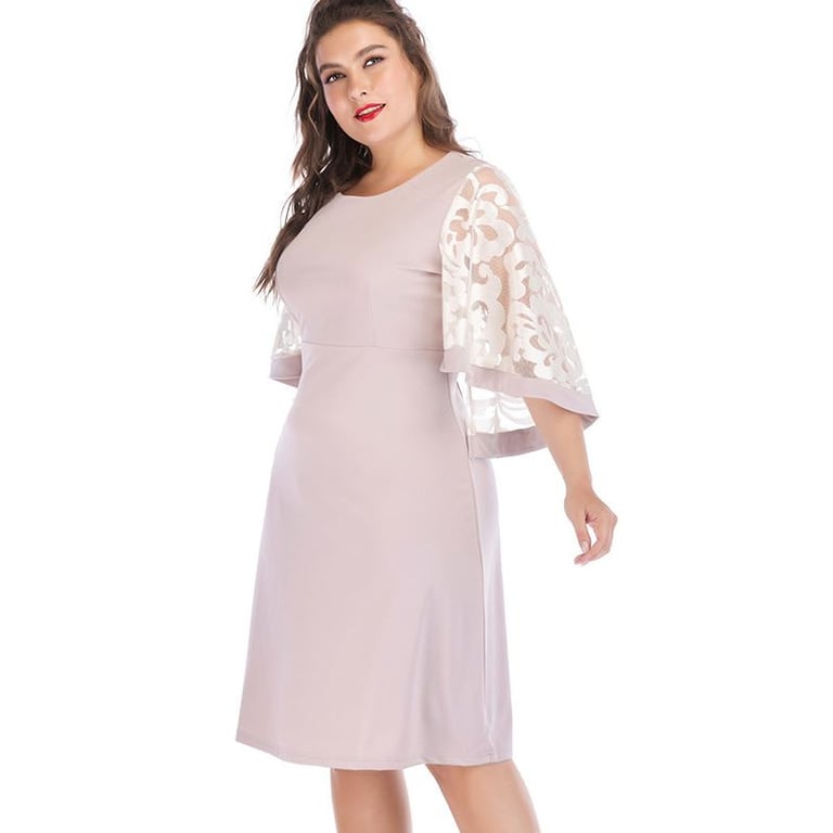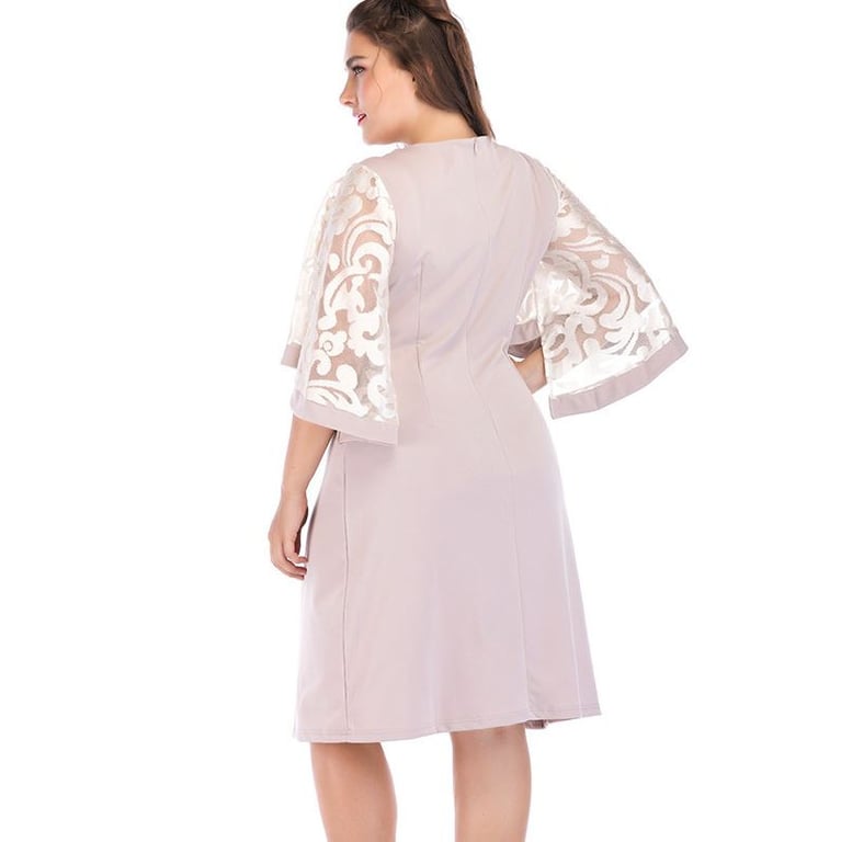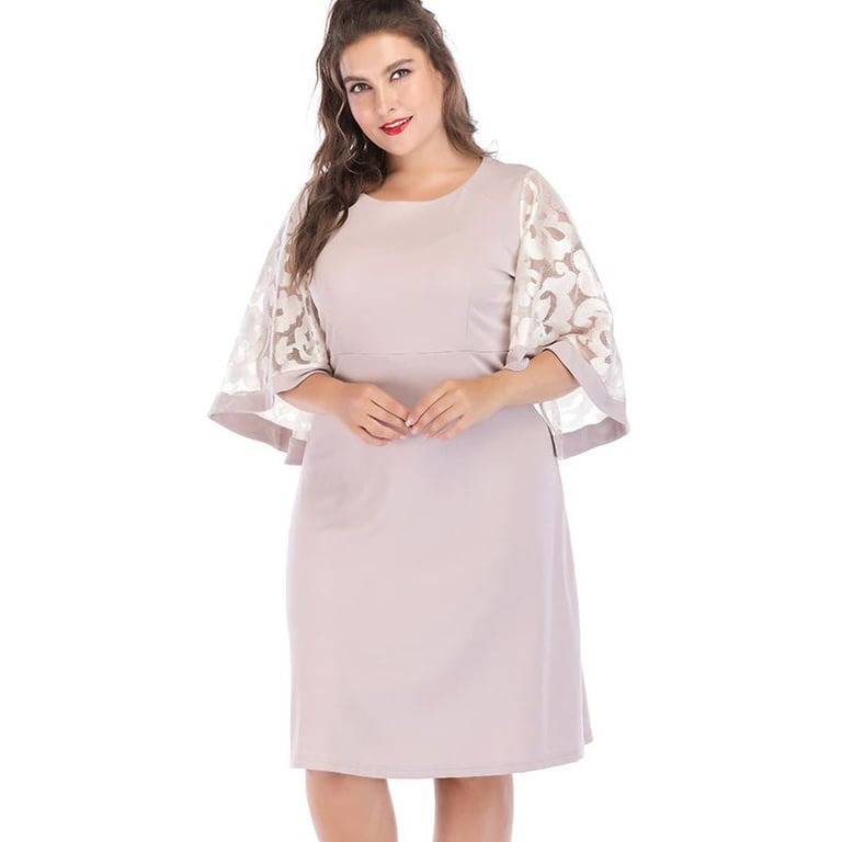 Vestido de noche de talla grande para mujer, de corte suelto, con escote redondo y mangas decoradas. Disponible en tres variantes de color.