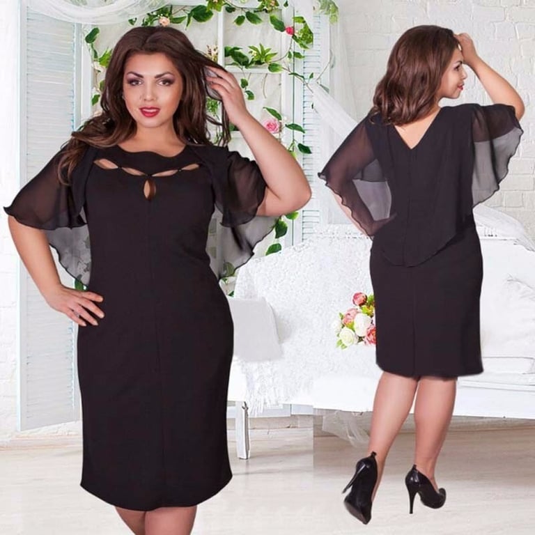 Vestido de mujer con escote redondo en la parte delantera y escote en V en la parte trasera. El vestido tiene un corte ajustado y mangas de murciélago. Disponible en tallas grandes. Diferentes colores.