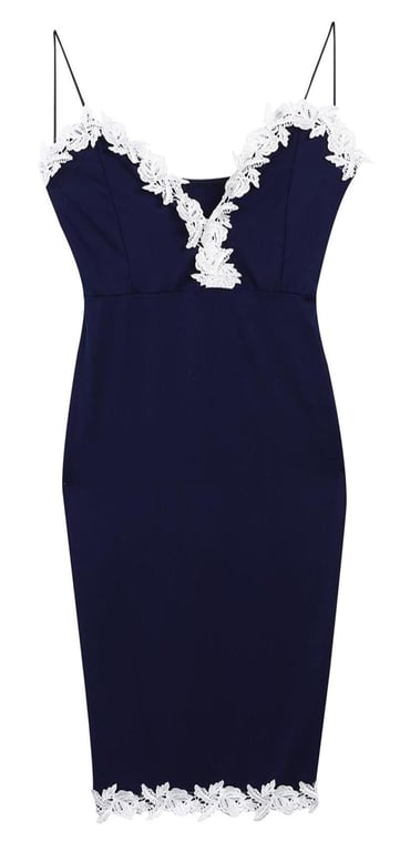 Escote profundo. Dobladillo adornado con encaje.