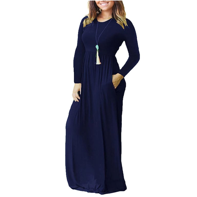 Vestido largo de mujer con mangas largas, adecuado para cualquier ocasión.