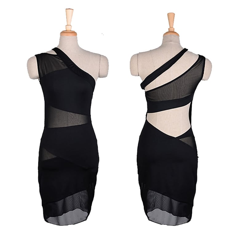 • Etiquetas: vestido de mujer, vestido de noche, vestido con franjas transparentes, vestido negro