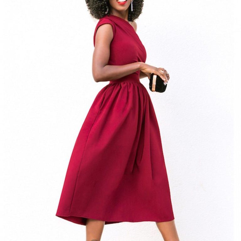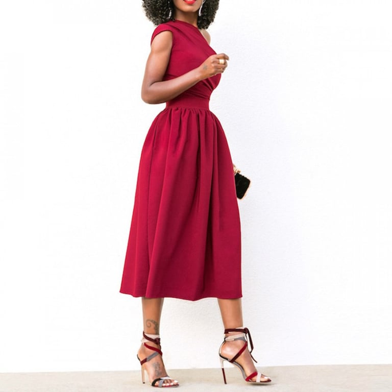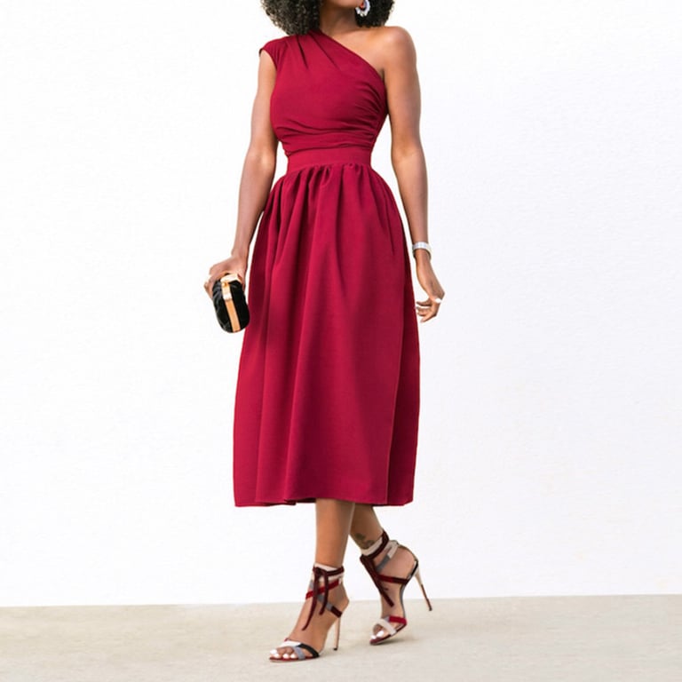Vestido de fiesta de mujer de un solo hombro.