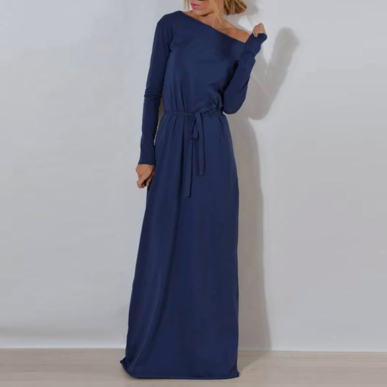 Vestido de sudadera para mujer, de corte holgado y con mangas largas. El vestido tiene un escote redondo y una cuerda en la cintura para ajustar. Largo y cómodo. Disponible en varios colores.