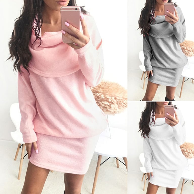 ¡Con estilo para el invierno! Vestido con mangas largas y un cuello alto suelto.