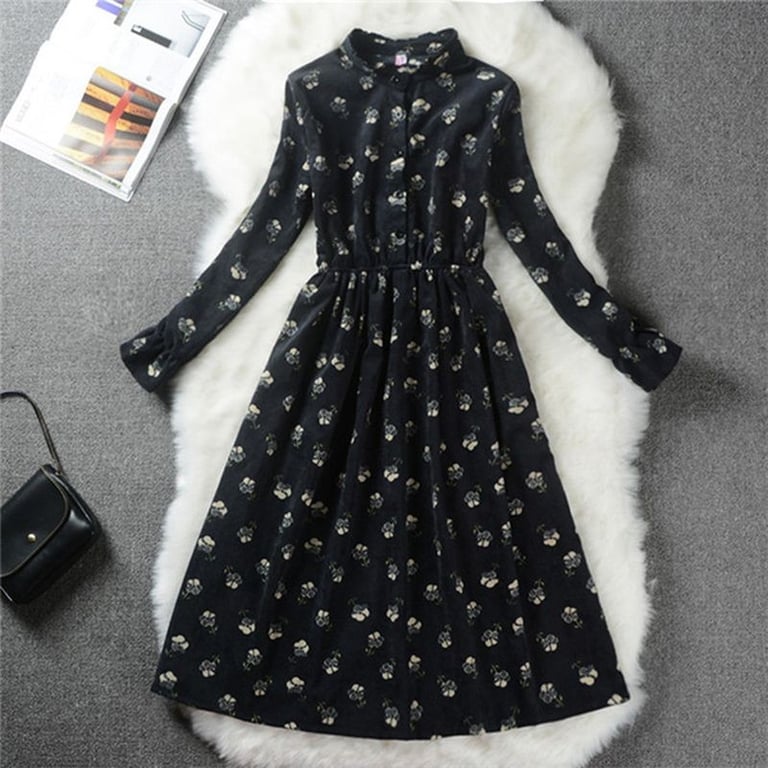 Hermoso vestido de otoño con mangas largas y cuello elevado.