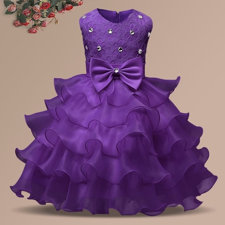 Vestido de princesa para niña con gran lazo Idelle - 8 variantes de color