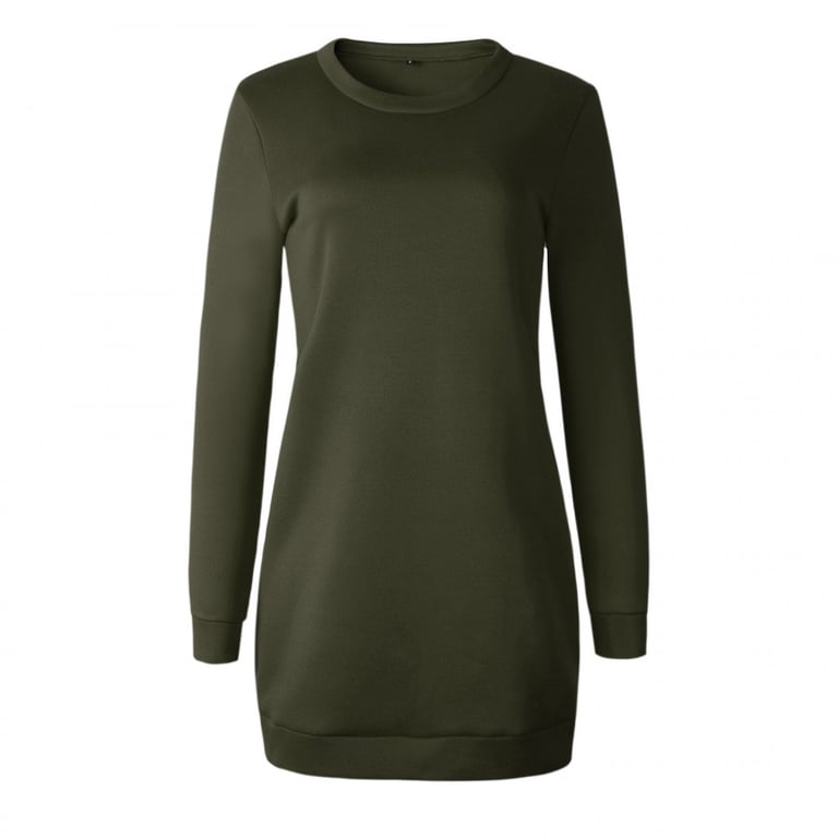 Vestido de sudadera para mujer con mangas largas y escote redondo. Corte corto y suelto. De un solo color. Disponible en varias variantes.