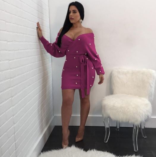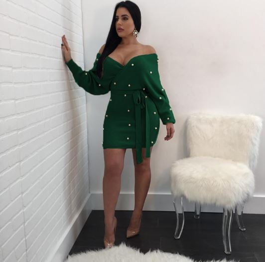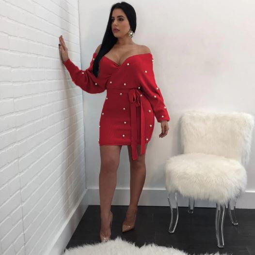 Vestido de suéter con perlas