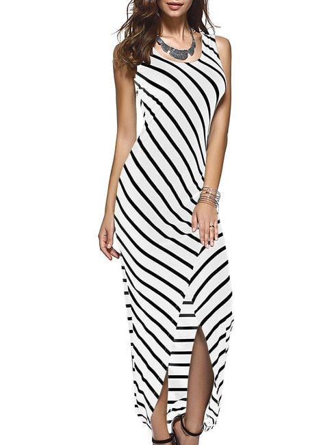 Sal a los soleados días de verano con un nuevo y hermoso vestido a rayas. El vestido es ajustado y cómodo de llevar. Puedes elegir un vestido de tirantes o uno de manga larga.