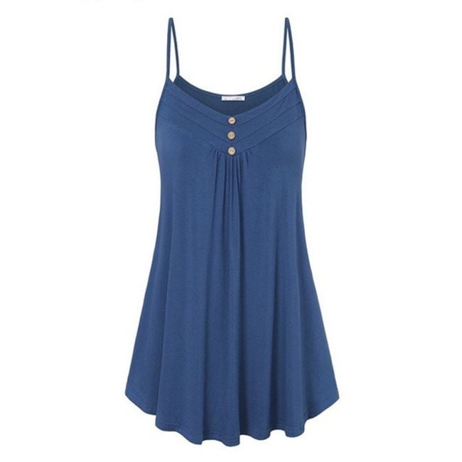 El vestido mini de verano es muy cómodo y es ideal, por ejemplo, para la playa. En la zona del escote está adornado con tres pequeños botones.