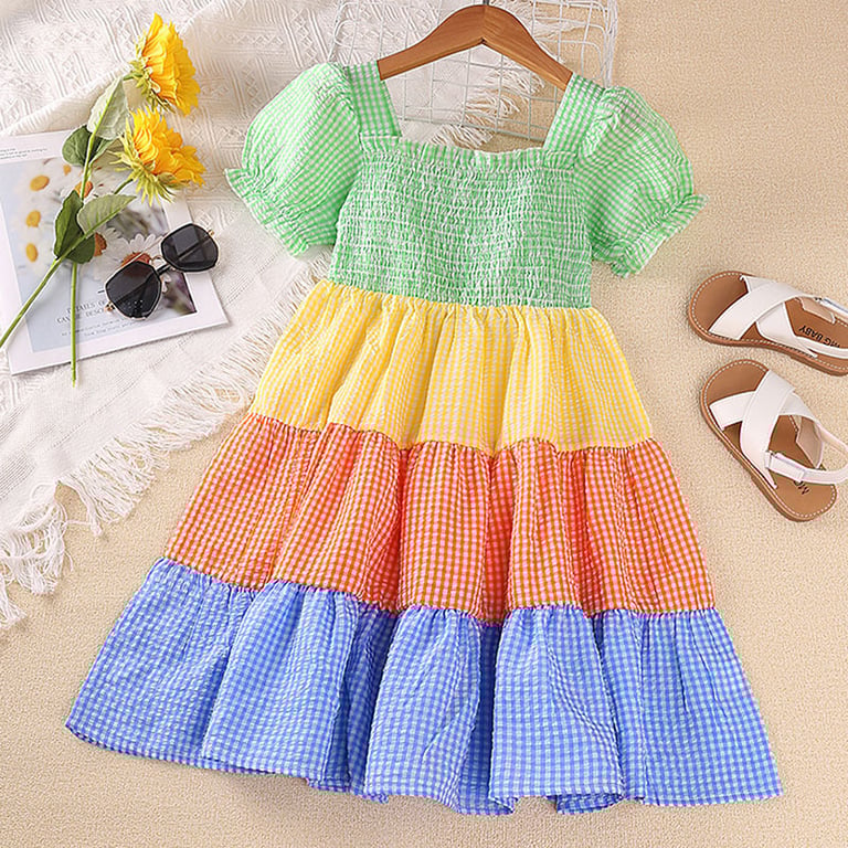 Vestido de verano de arcoíris multicolor para niña con volantes Alex.