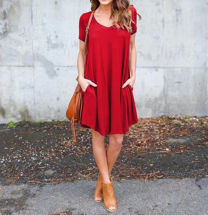 Vestido de verano estiloso para mujer con bolsillos Alondra - rojo