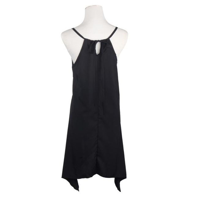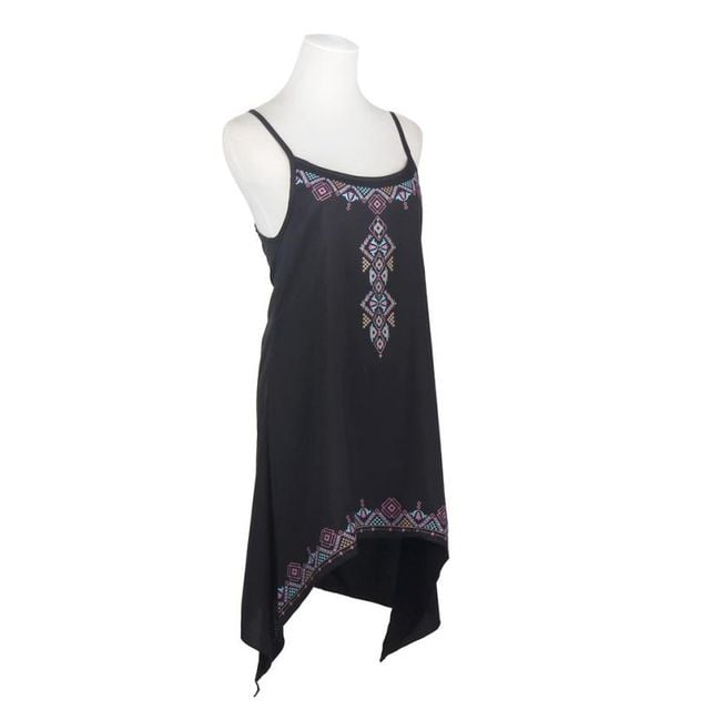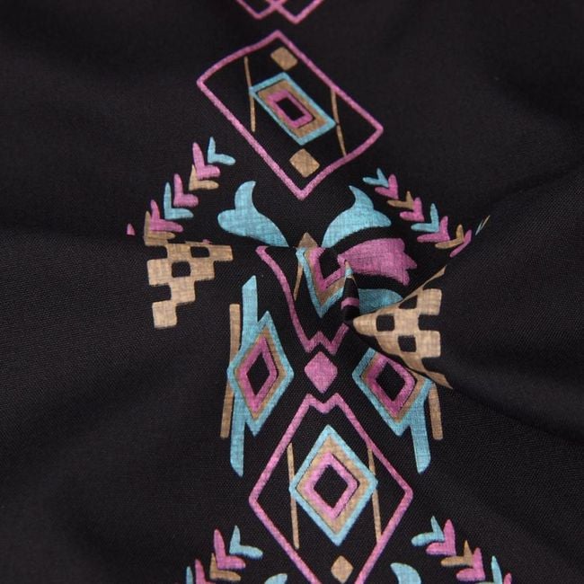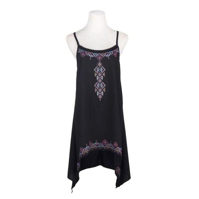 Vestido de verano negro con formas geométricas.