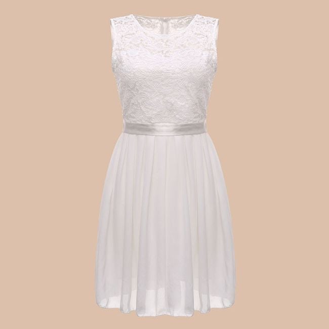 El vestido de mujer tiene un top de encaje y una cinta de moda alrededor de la cintura. El elegante encaje se ve muy sexy y atractivo. El vestido es absolutamente ideal para el verano o para ocasiones especiales. El material agradable y ligero proporciona la máxima comodidad. El vestido está disponible en varios colores y en muchas tallas, de las cuales cada una puede elegir. La tabla de tallas se encuentra debajo de las características del producto en la parte inferior de la página.