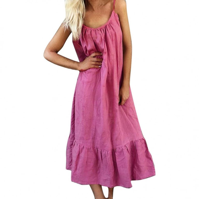 Vestido de verano para mujer con corte amplio y volantes. Tirantes finos para atar. Disponible en dos variantes.