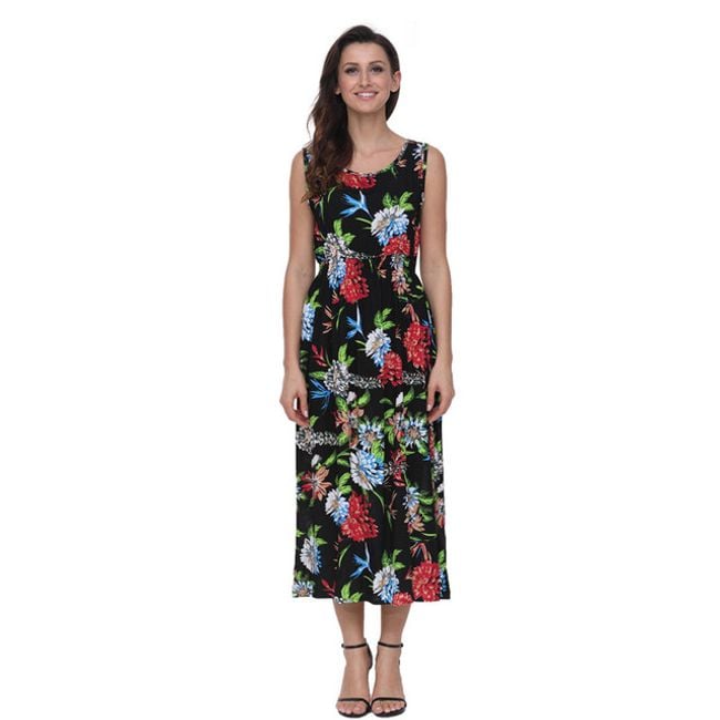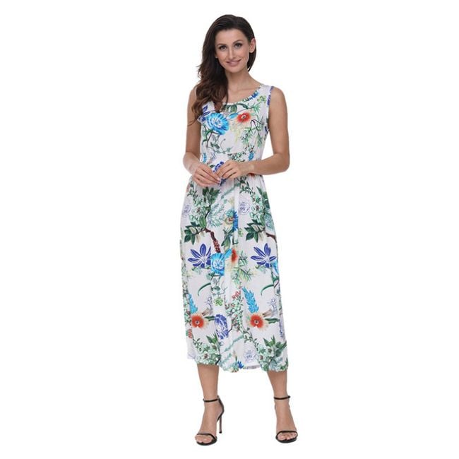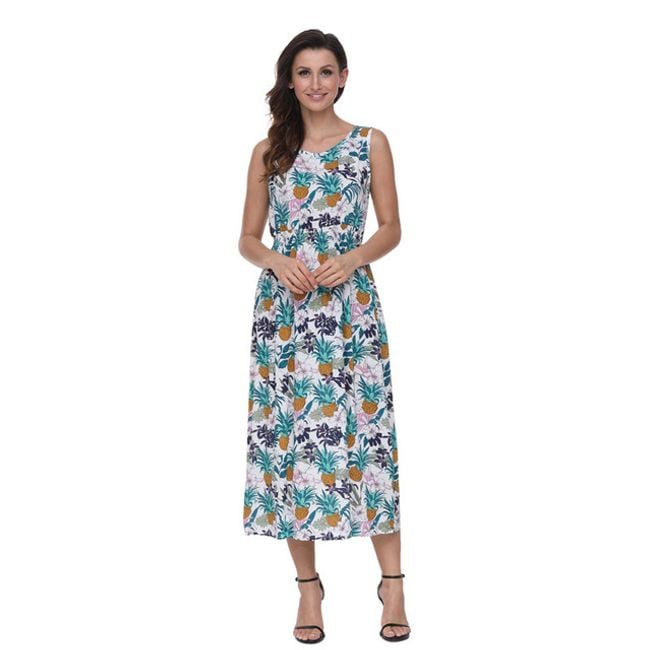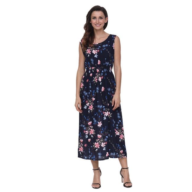 El vestido de verano para mujer cuenta con goma en la cintura y un corte largo. Es perfecto para usar en el trabajo o en una cena. Está disponible en 8 variantes de color.