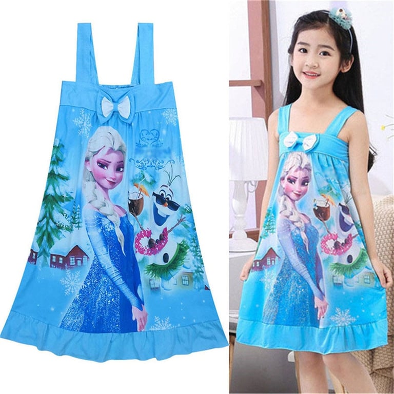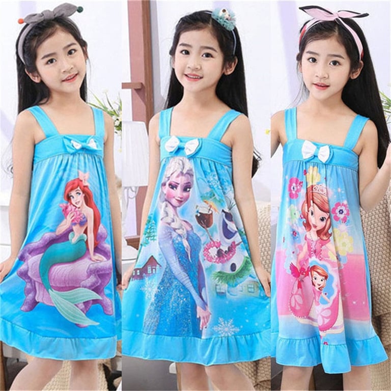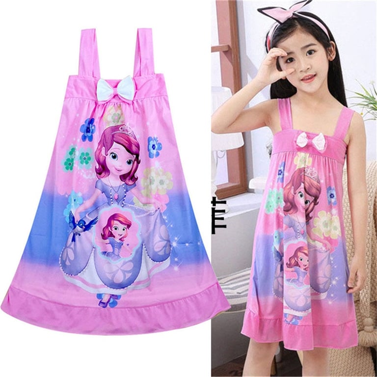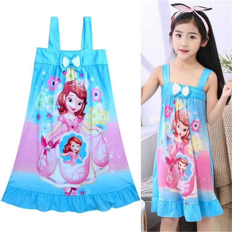 Vestido de verano para niña con tirantes y estampado de princesa