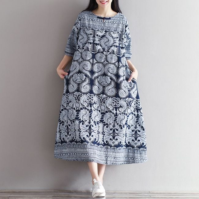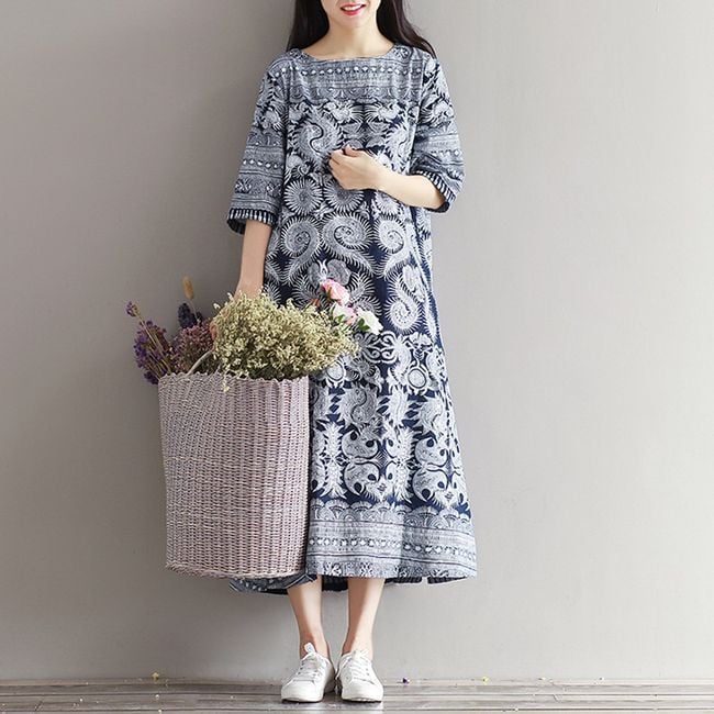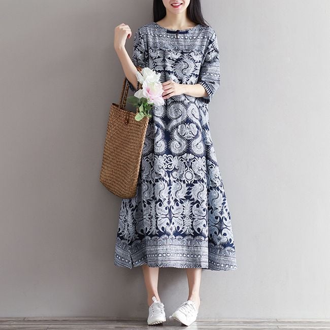 Vestido de verano por debajo de la rodilla en estilo vintage - 4 tamaños