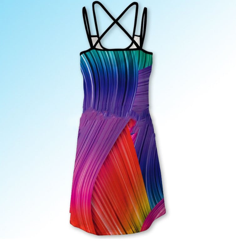 • Con tirantes dobles, escote redondo y longitud por encima de la rodilla.