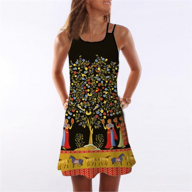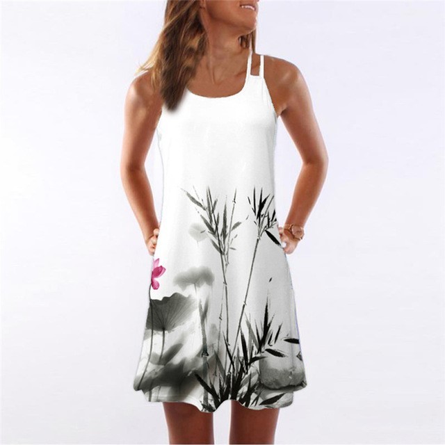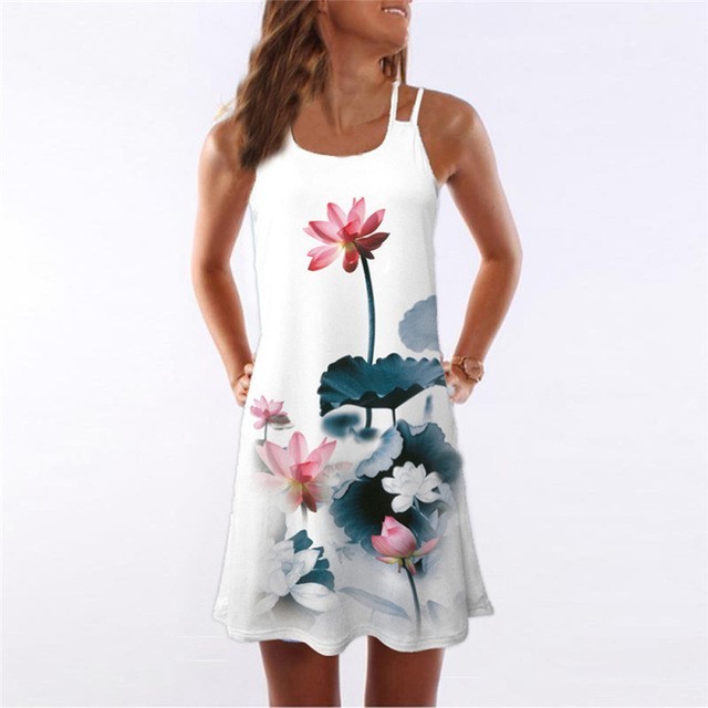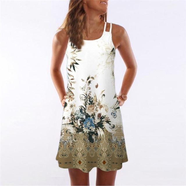 Vestido de verano para mujer con tirantes y diseño estampado