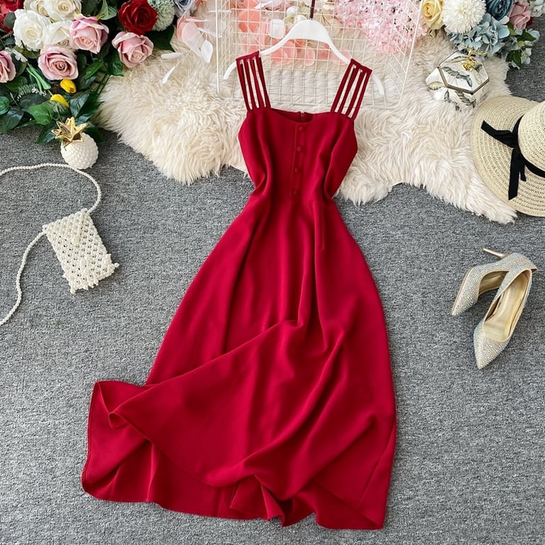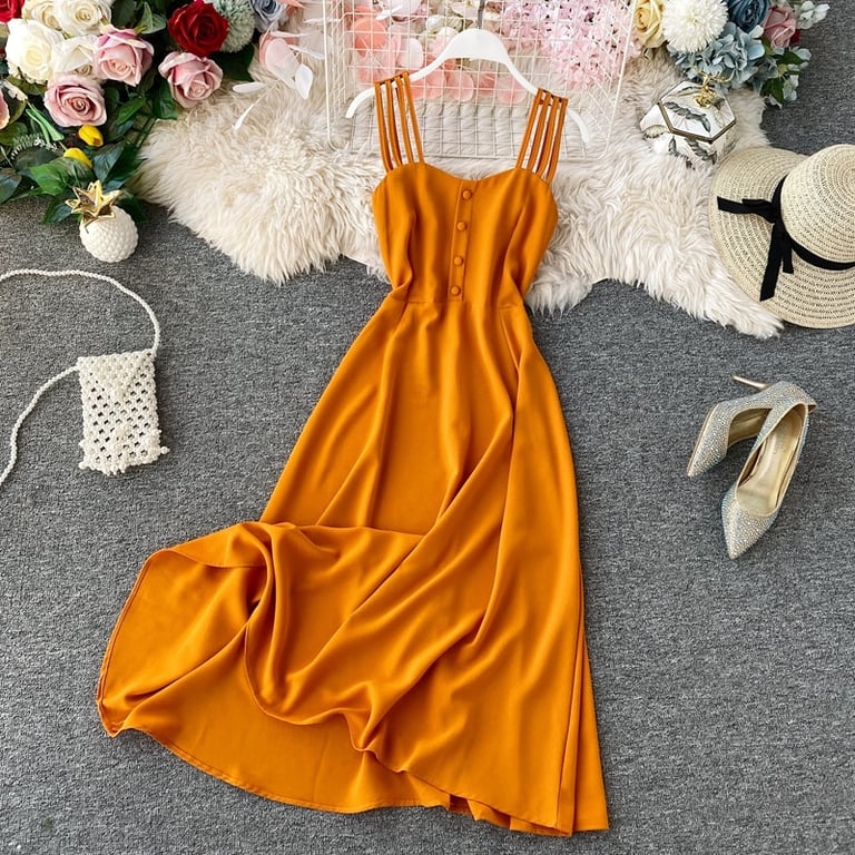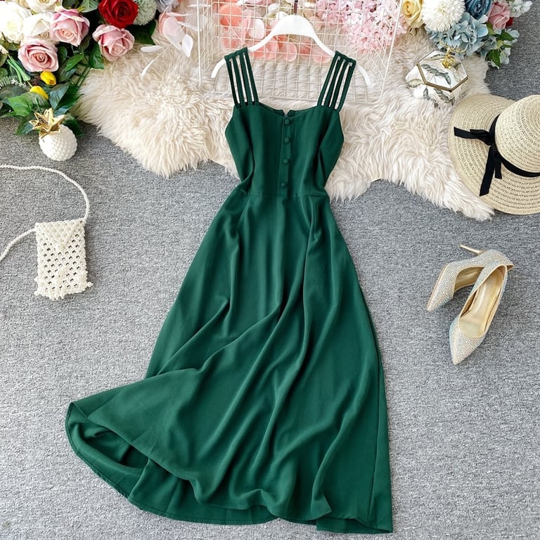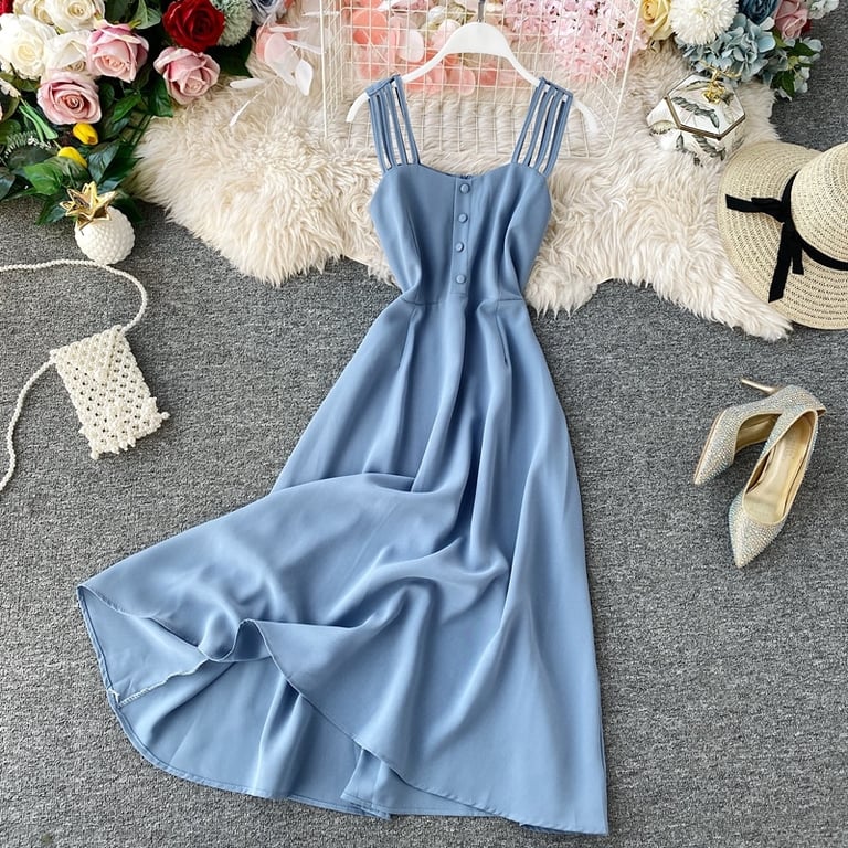 • El vestido de verano vintage sencillo es muy elegante y favorecedor para la figura.