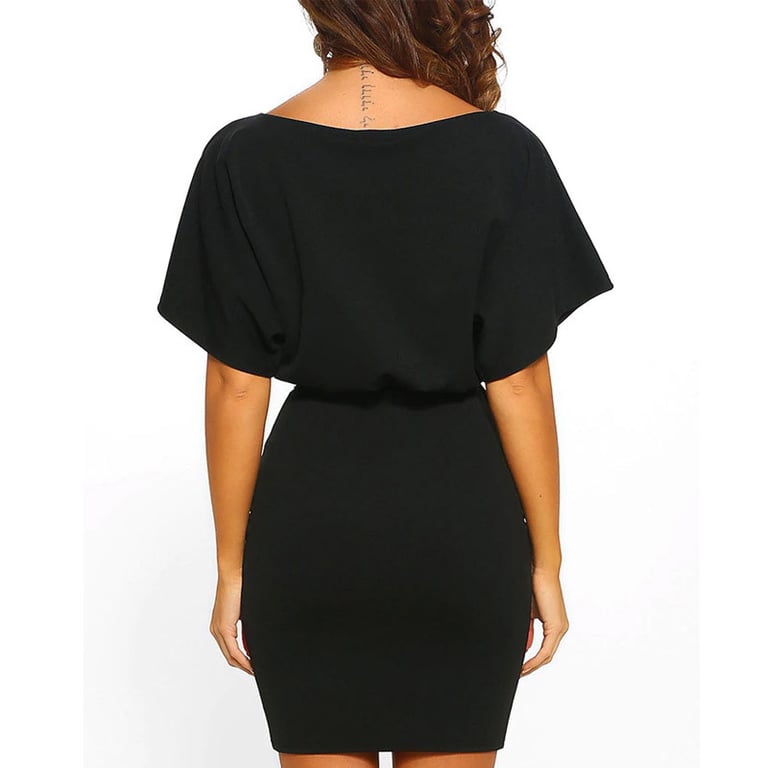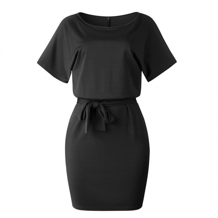 Vestido de cóctel para mujer con mangas cortas y anchas y escote barco. Cinturón para atar en la cintura. Diseño elegante en un solo color. Disponible en varios colores.