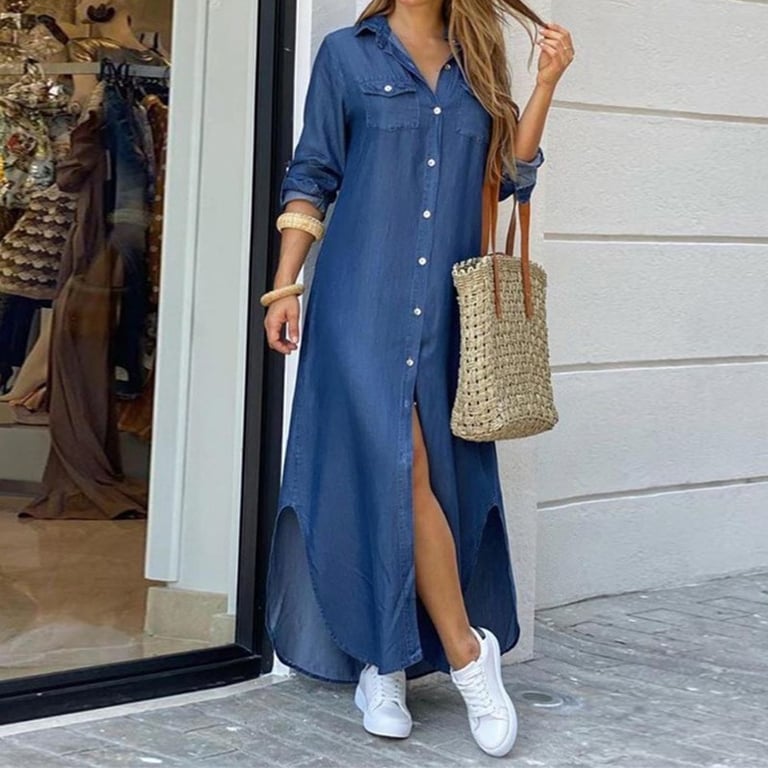 Vestido de mujer con mangas largas y botones, ideal para los días de primavera.