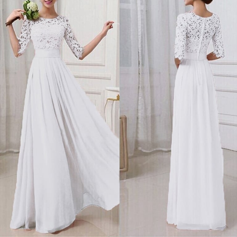 Elegante vestido largo de fiesta adornado con encaje. Ideal para eventos como bailes, bodas u otras ocasiones especiales.
