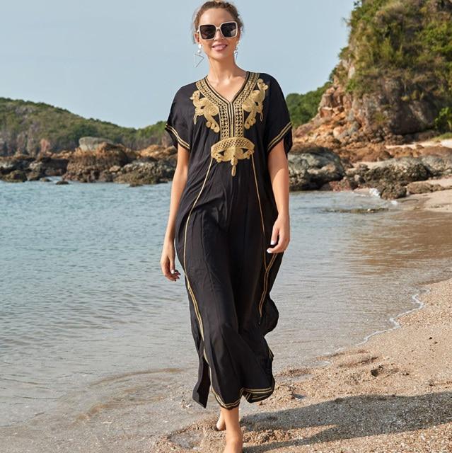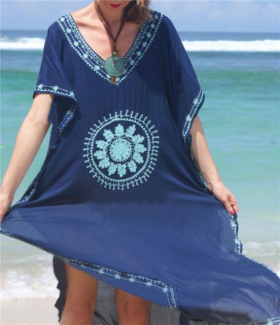 Vestido largo de algodón de verano, en hermosos colores veraniegos. El vestido tiene aberturas a los lados. Es adecuado para la playa.