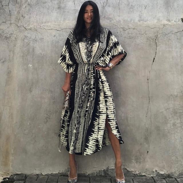 Vestido largo de verano suelto con mangas 3/4. El vestido está disponible en tres variantes. Está hecho de seda.