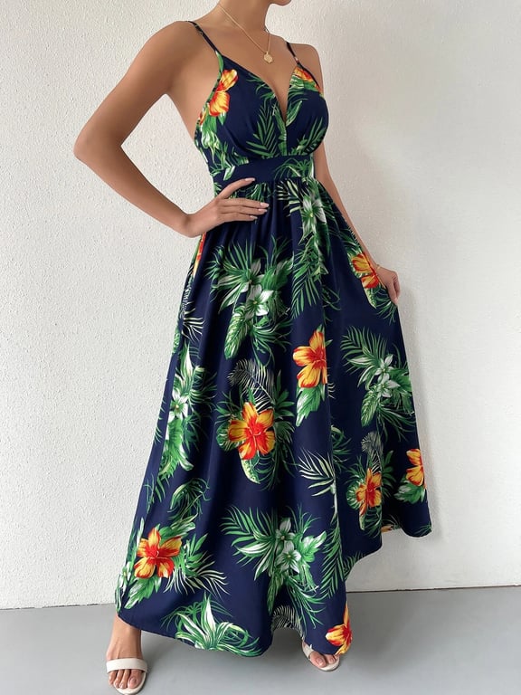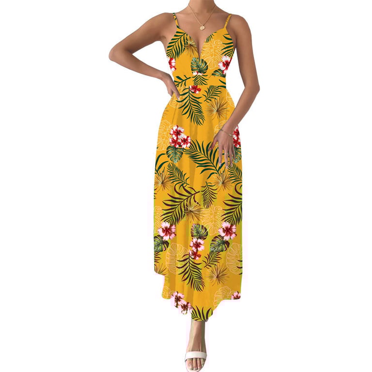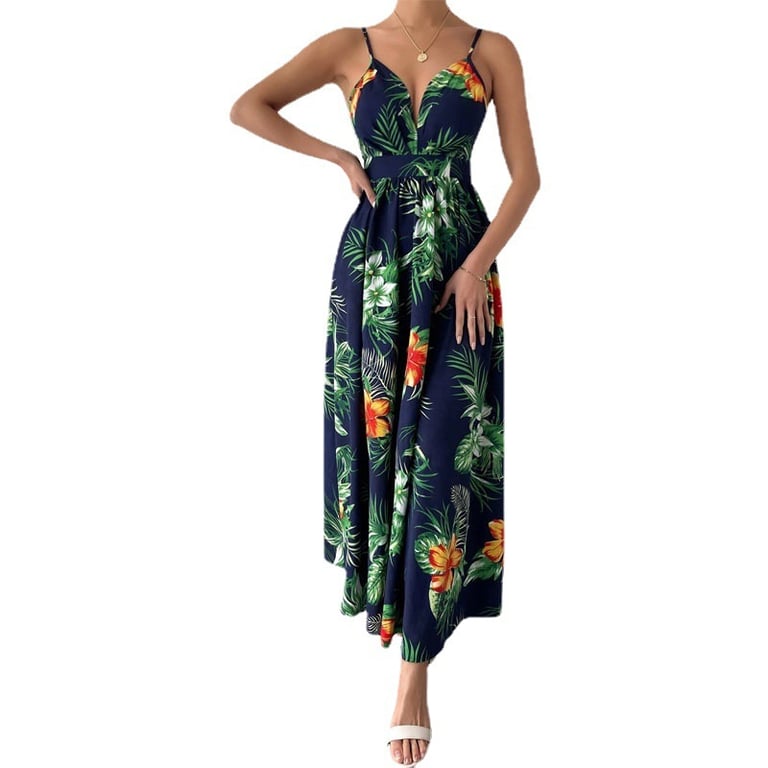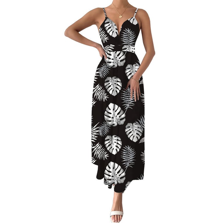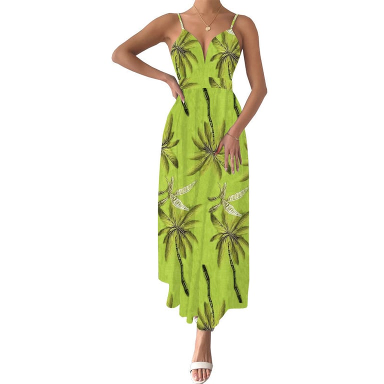 • ¿Quieres brillar en los días de verano con un vestido largo de tirantes y patrones de palmeras, flores y exotismo?