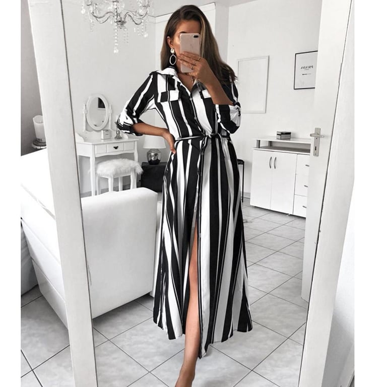 • Etiquetas: vestido maxi para mujer, playa, elegante, botones, largo, vestido, a rayas