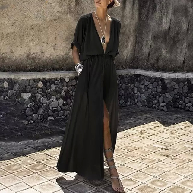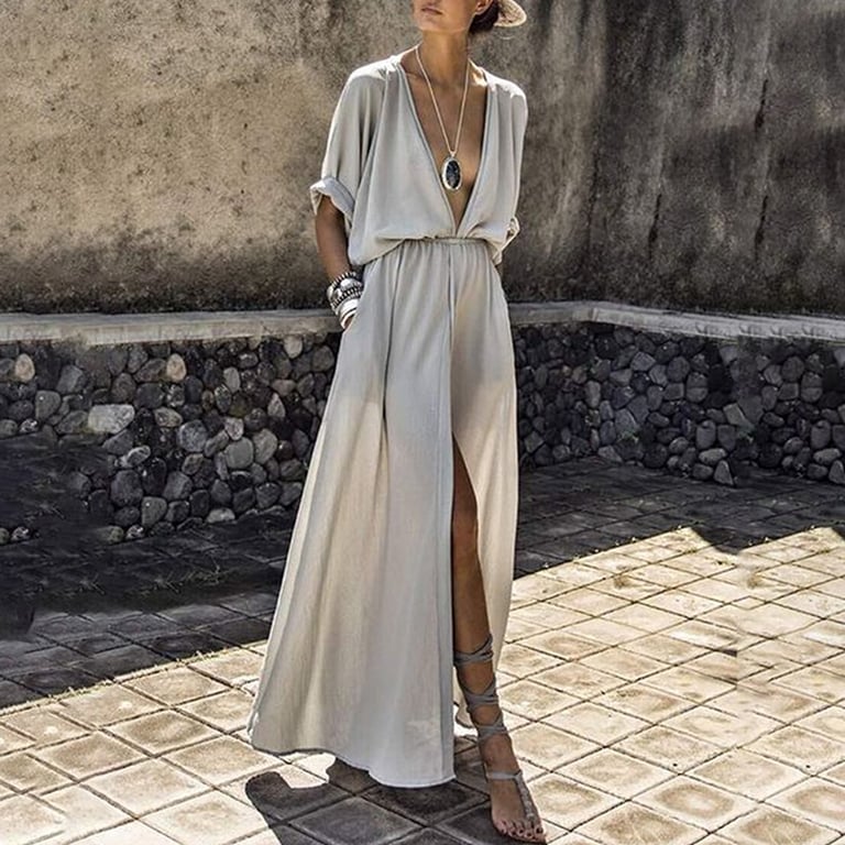 Vestido maxi de verano para mujer con abertura y escote pronunciado