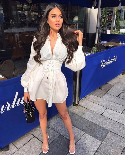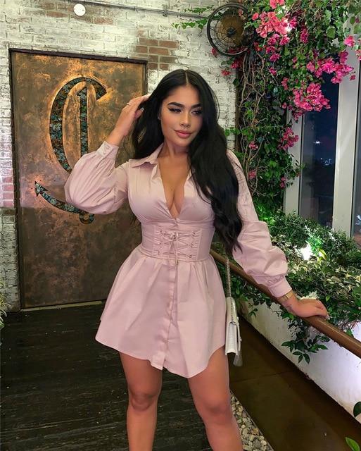 Hermoso vestido mini de manga larga. El vestido está hecho de poliéster. Disponible en color rosa o blanco.