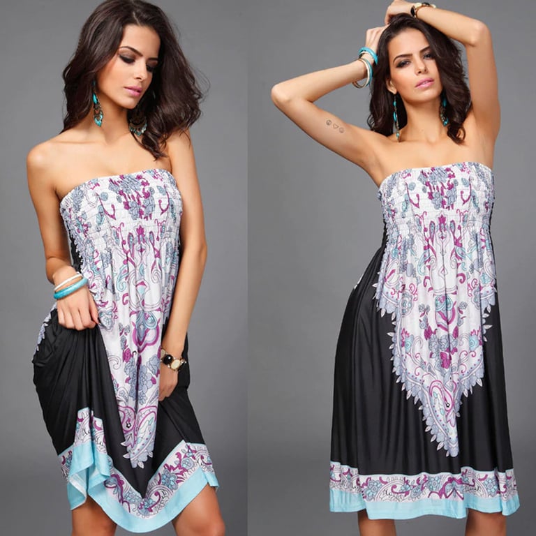 Vestido atractivo que no te molestará en ningún lugar. Gracias a la banda elástica en el pecho, se mantendrá sin tirantes y estarás maravillosamente bronceada. Son muy cómodos para el uso diario. ¡Compra inteligentemente, por un precio hermoso y con envío gratis!